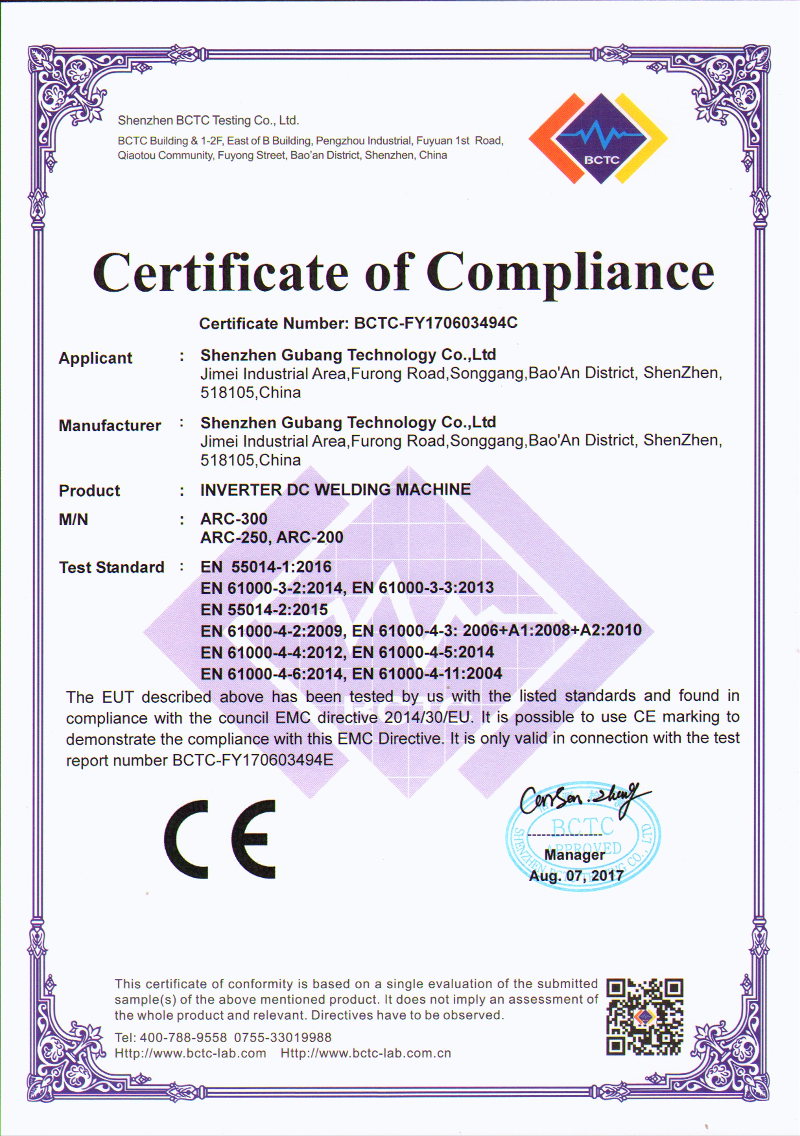 我们很荣幸能获得许多证书的认可,它们分为CCC CE 软件证书。